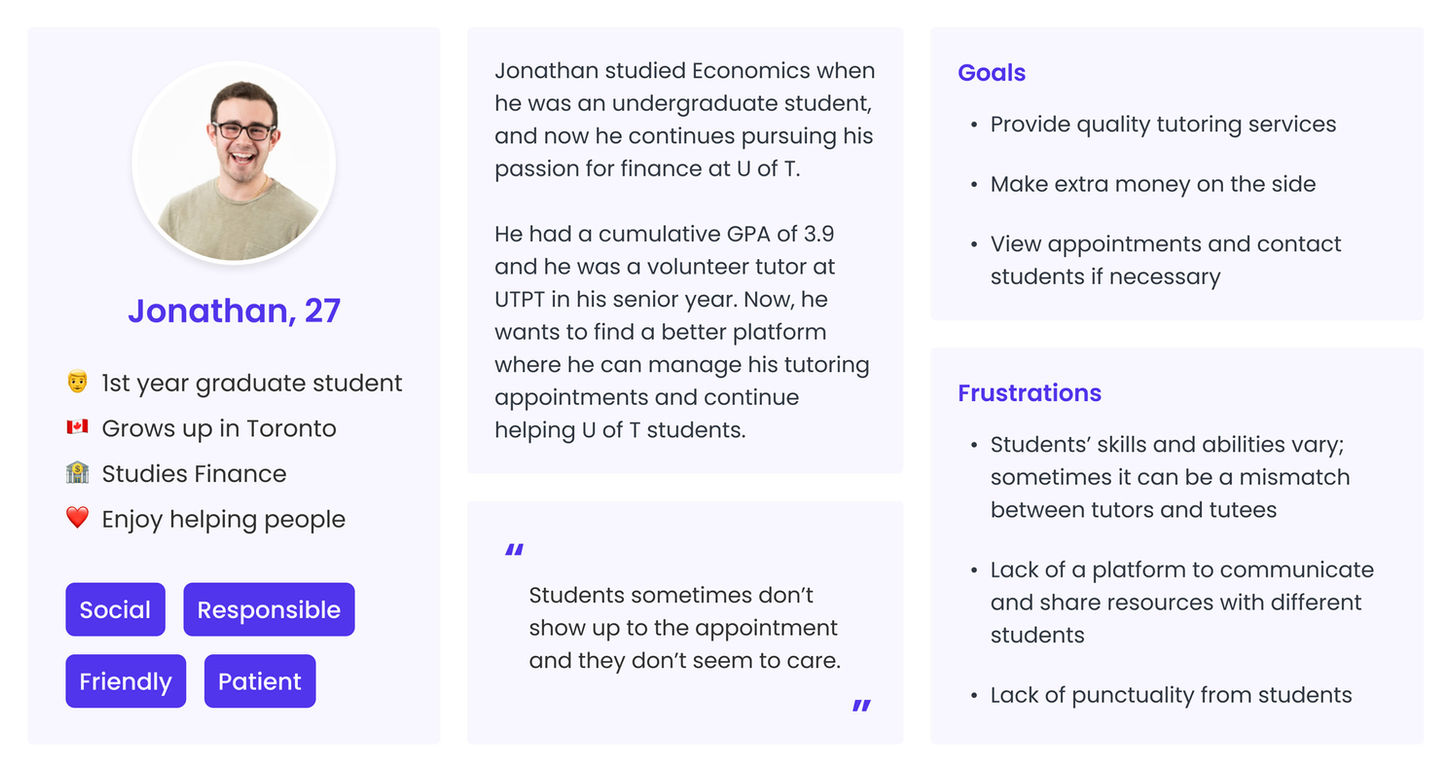 From user research, we came up with 2 types of personas that could reflect the characteristics of potentials users: tutees and tutors.